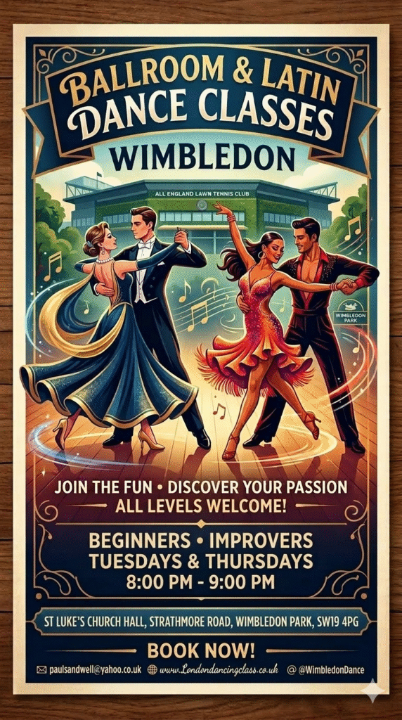 Discover the joy of dance at the Wimbledon School of Freestyle and Ballroom! Our expert instructor offer engaging classes in both Ballroom and Latin dance styles, perfect for all skill levels especially beginner. Whether you’re a beginner looking to learn the basics or an experienced dancer aiming to refine your technique, our welcoming community and vibrant atmosphere will inspire you to move with confidence and grace. Join us and experience the magic of dance with our dedicated instructors! 💃🕺